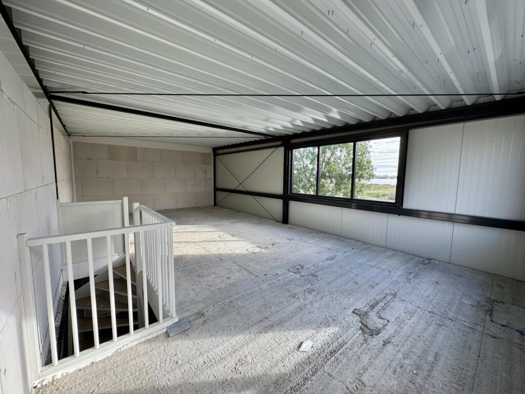 De vrije hoogte van de unit bedraagt circa 3,75 meter op de begane grond en beschikt over een elektrisch bedienbare overheaddeur van 3x3,2 meter (BxH).