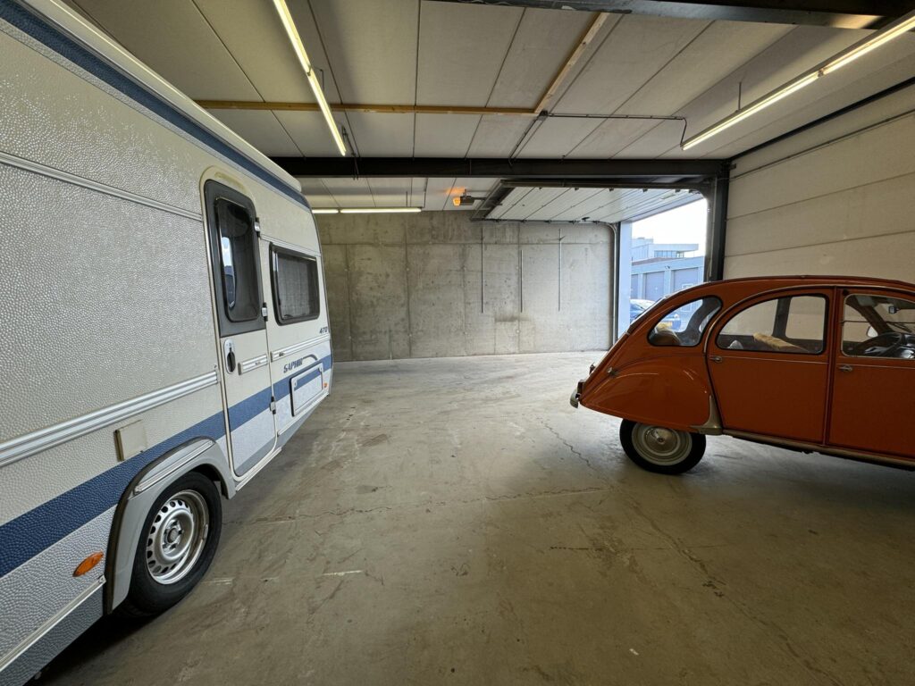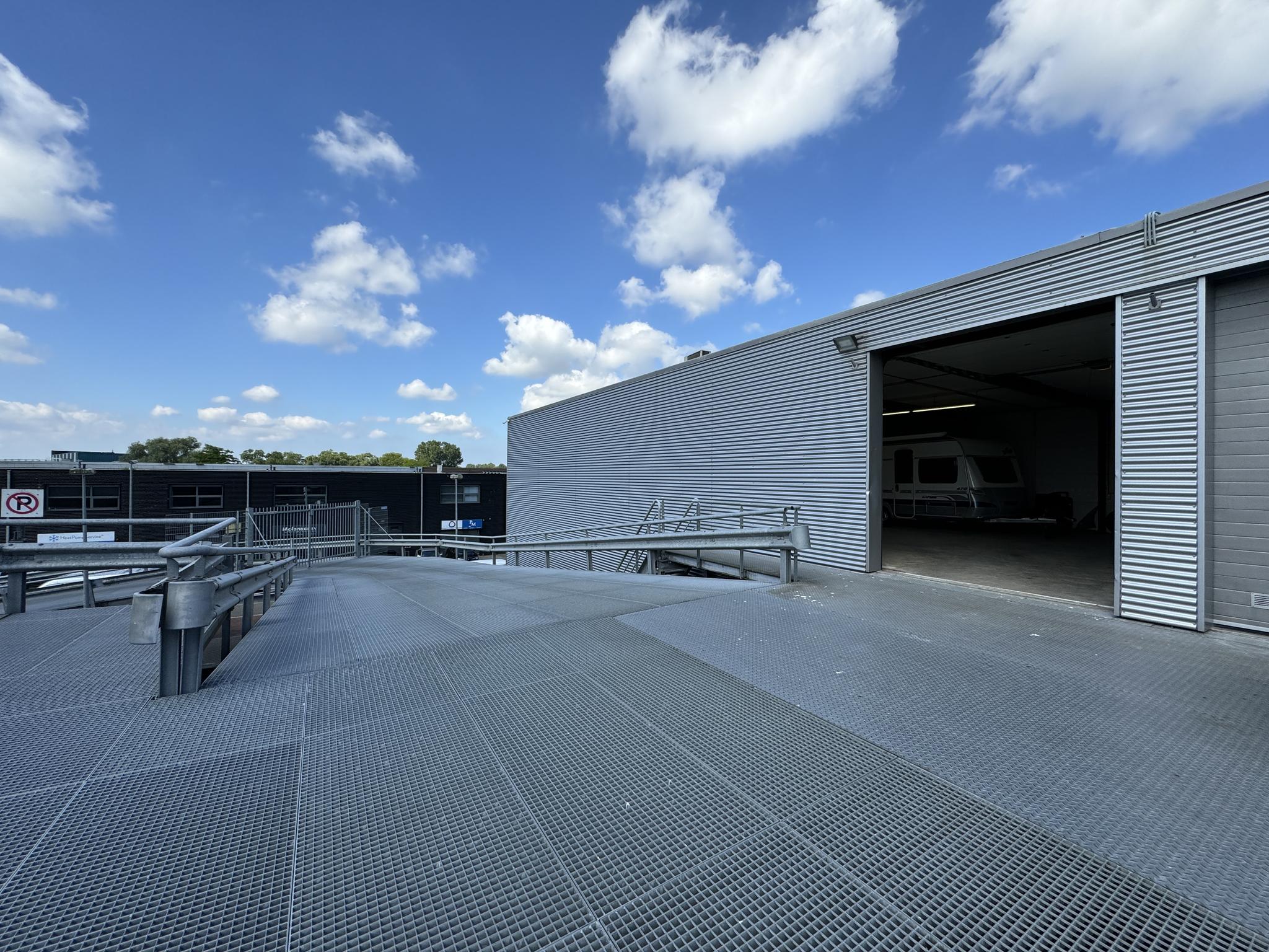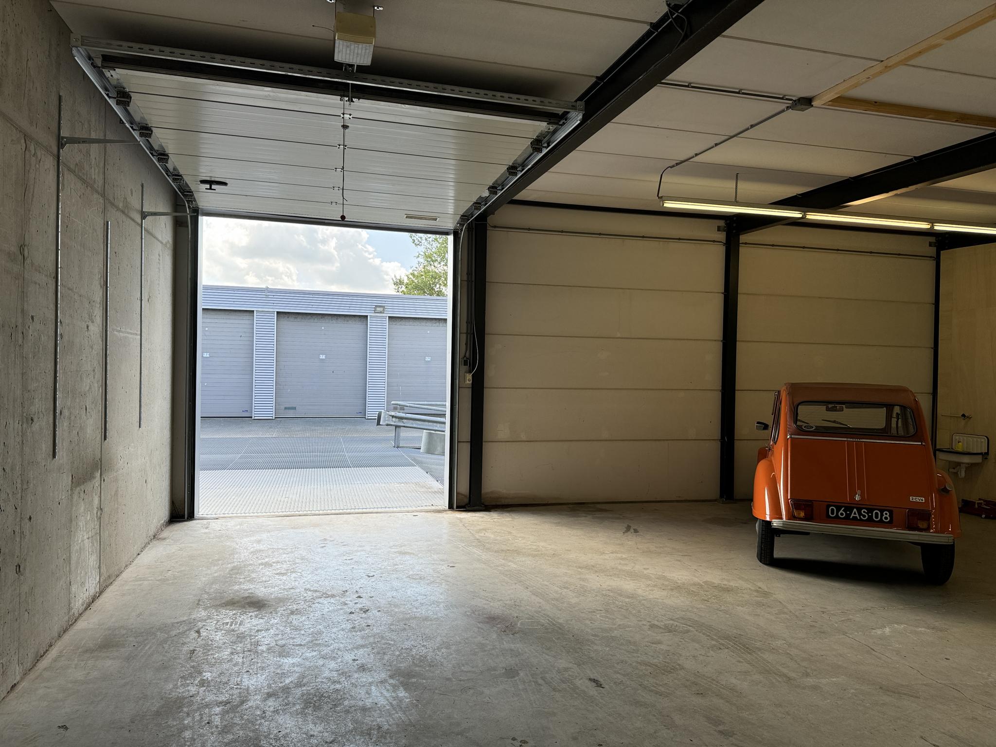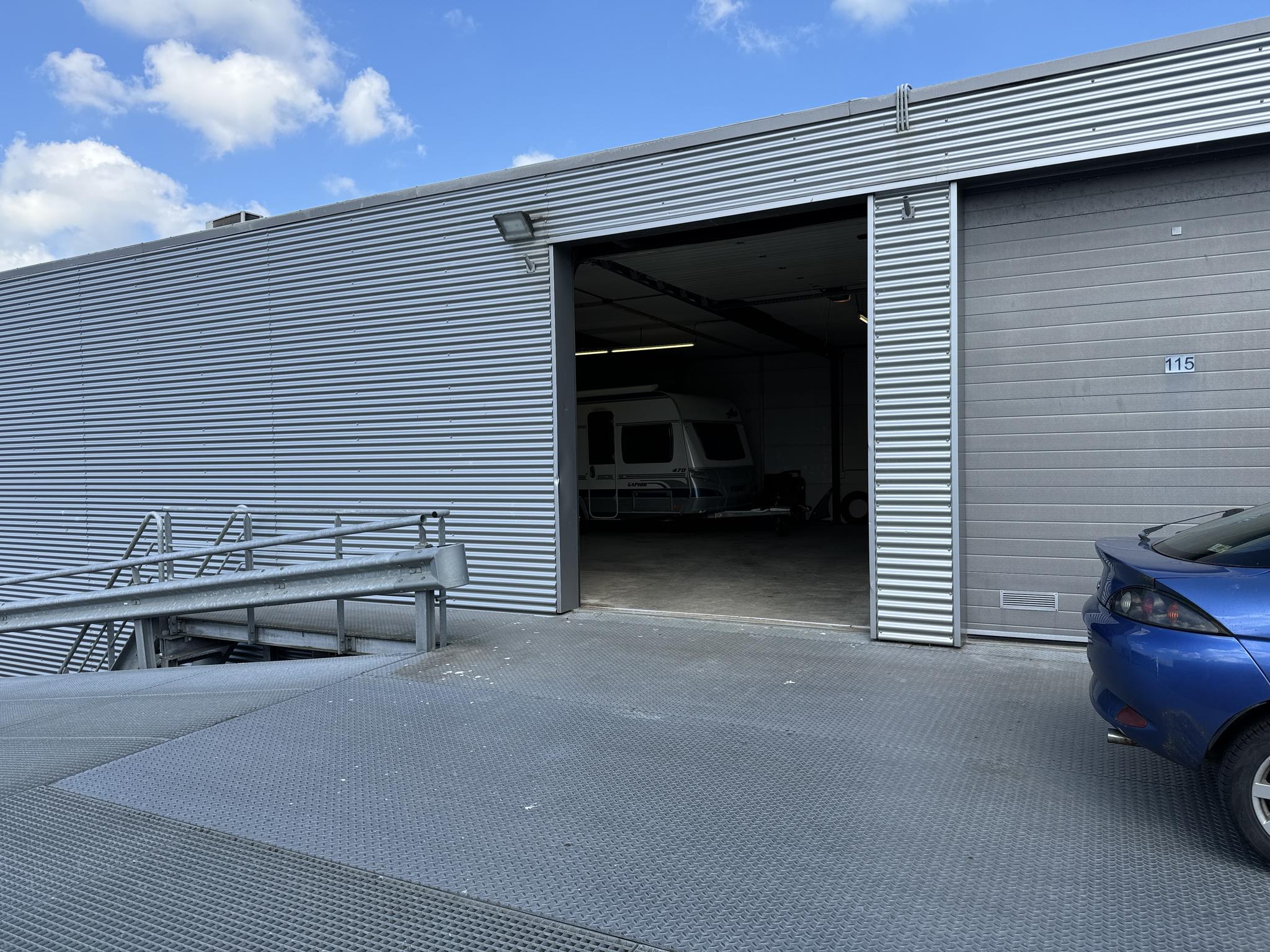 De totale oppervlakte meet ca. 100 m2 en is bereikbaar middels de (afgesloten) hellingbaan. De unit is afgesloten middels een elektrische overheaddeur.