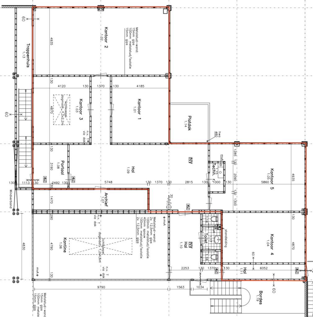 Circa 227 m² BVO kantoorruimte, gelegen op de eerste verdieping.