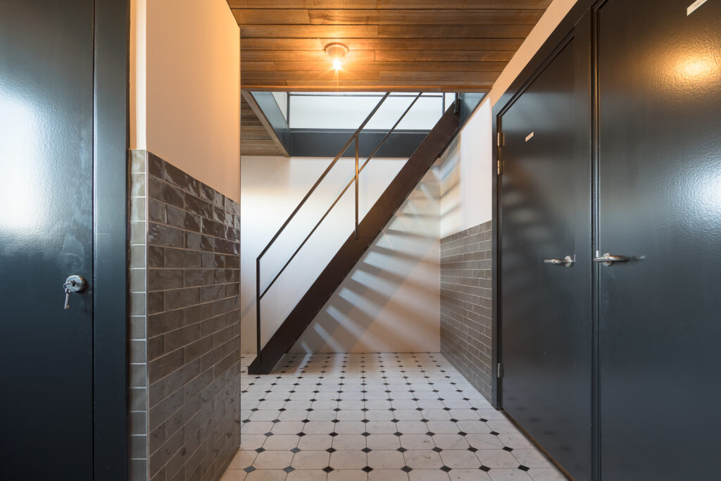 Voorzien van gezamenlijke toiletgroep en trapopgang.