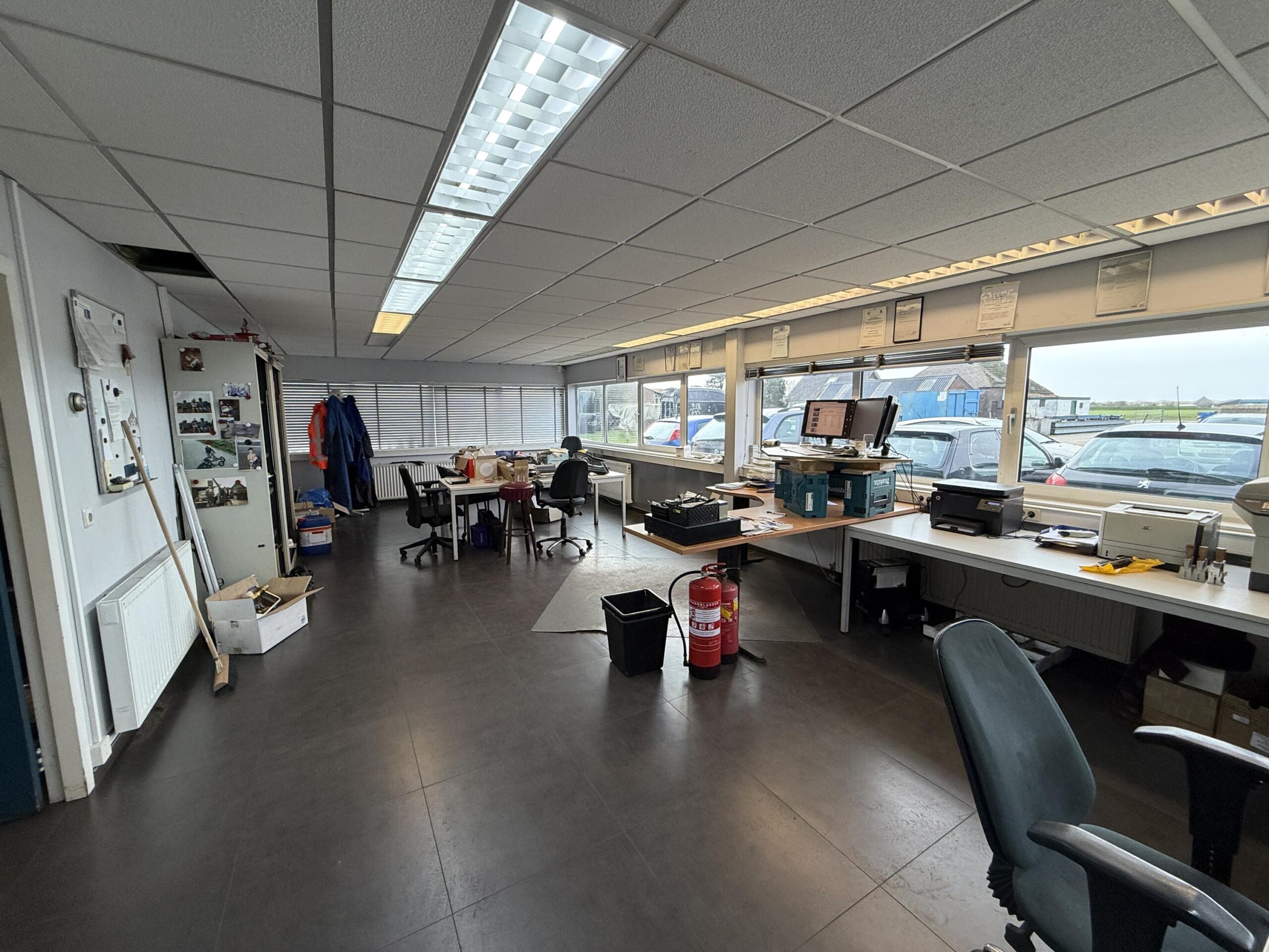 De bedrijfsruimte is praktisch ingericht en beschikt over een dubbellaags kantoor aan de voorzijde, wat zorgt voor een duidelijke scheiding tussen kantoor- en bedrijfsactiviteiten. Het buitenterrein is deels afsluitbaar en daardoor uitermate geschikt voor buitenopslag, parkeren of logistieke doeleinden.